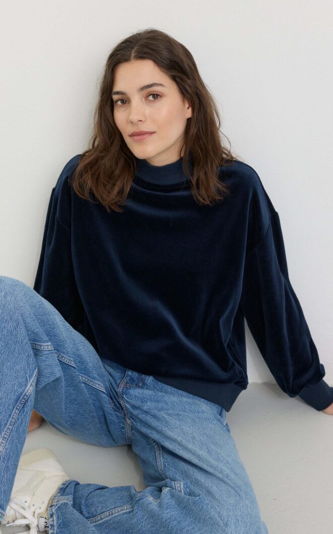 Het ALLIUM sweatshirt combineert knus comfort met duurzame stijl. Gemaakt van 100% biologisch katoen in zachte veloursstof, biedt het een bijzonder comfortabel draaggevoel. De opstaande kraag geeft het ontwerp een moderne uitstraling, terwijl de subtiele logo-borduring een stijlvolle touch toevoegt.