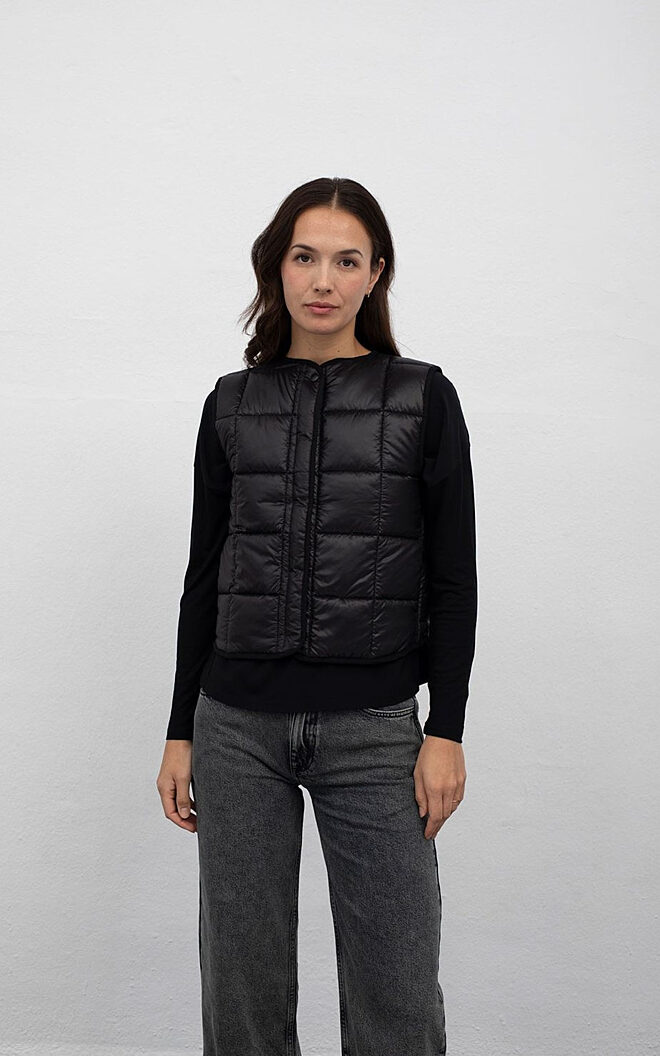 Finish your fall look in versatile, comfortable style with this croce quilted vest from Mus & Bombon. Fitted, pockets, button closure