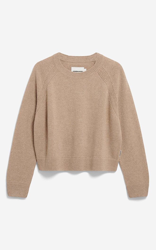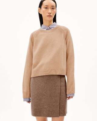 De diliriaa reglana gebreide pullover straalt met een losse korte pasvorm en middelgroot breisel. Ze is gemaakt uit een mix van biologisch en gerecycleerd wol en biedt een aangename warmte terwijl ze ook ademend blijft. Dese tijdloze trui is ideaal voor een ontspannend draagcomfort.