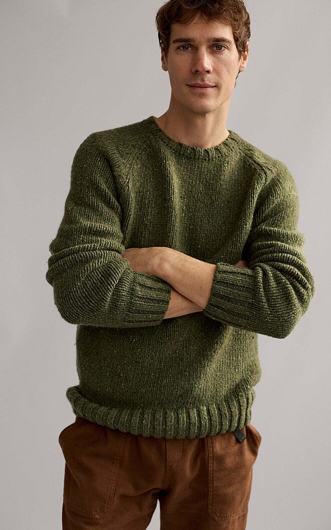 Gemaakt van het fijnste Italiaanse garen, dat zelf bestaat uit 100% gerecyclede materialen, is de Golden herentrui bijzonder warm en duurzaam. De trui is afgewerkt met kleurrijke neps (spikkels in het garen).