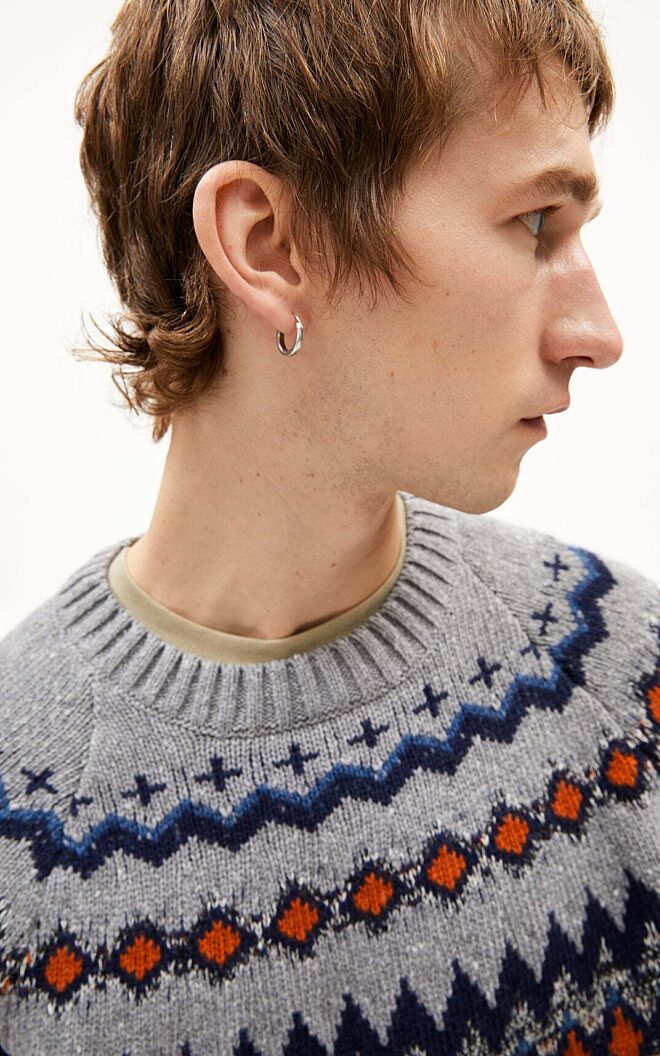 De KAALLA FAIR ISLE trui heeft een rechte pasvorm en een opvallend grofgebreid patroon in traditionele Fair Isle-stijl. De grafische verloopprint doet denken aan klassieke Noorse motieven. De mix van biologische katoen en wol voelt zacht aan en houdt je lekker warm.