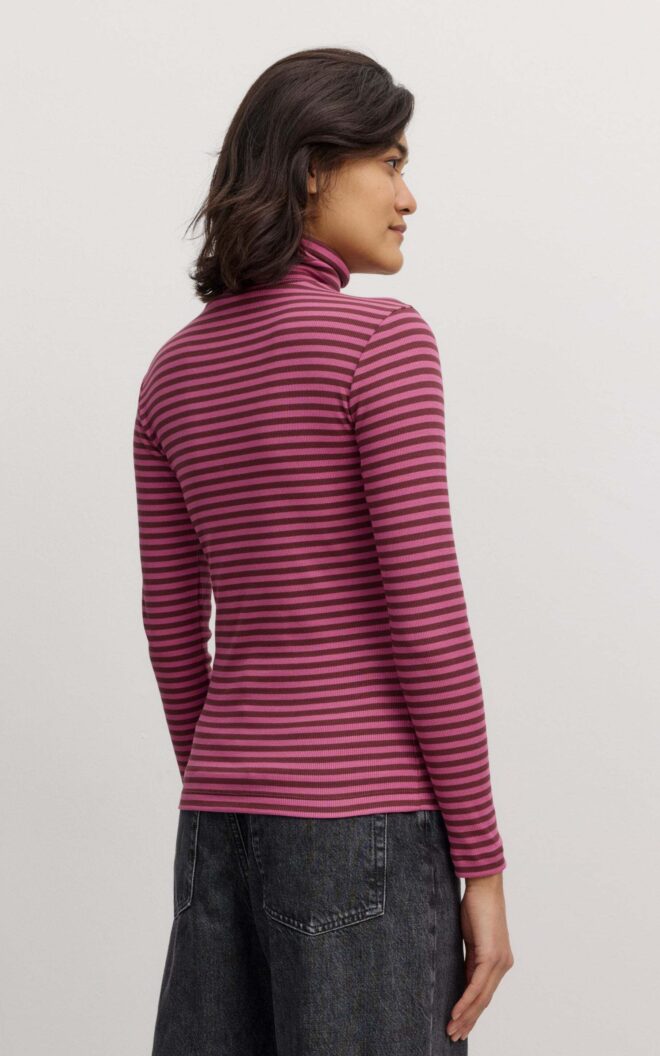 Onze Liatris Stripes top combineert comfort en stijl op een indrukwekkende manier. De aansluitende rolkraag zorgt voor een aangenaam draagcomfort en houdt je lekker warm tijdens koudere dagen. Door het rib structuur met een klassiek gestreepte patroon krijgt het truitje haar tijdloze elegante. Gelijktijdig accentueert de passende fit je silhouette.