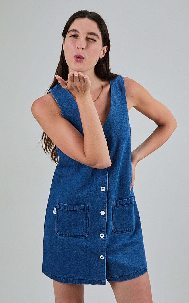 De Denim Pichi Shorts Dress is een alledaagse korte tuinjurk met een ontspannen denim uitstraling. Ontworpen om gemakkelijk te combineren in laagjes: draag hem over een T-shirt of een lichte top voor een eenvoudige zomerse look.