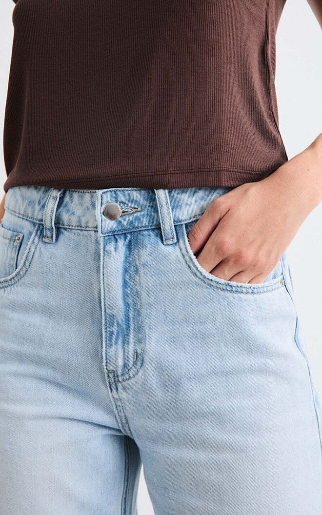 Recht gesneden denim broek met metalen knoopsluiting aan de tailleband. Het strakke ontwerp maakt dit een veelzijdige basic voor elke dag.