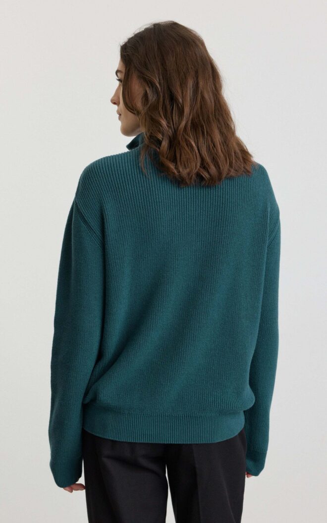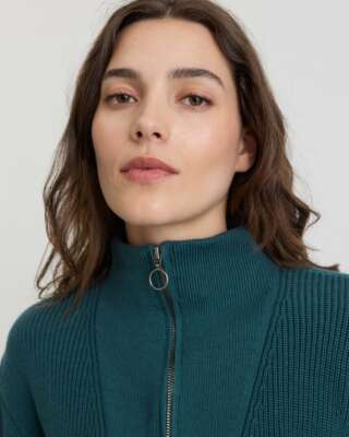 Onze Troyer NIGELLA brengt gezellige warmte en stijlvol design in je dagelijks leven. Het hoogwaardige breisel van 100% biologisch katoen zorgt voor een prettig zacht draaggevoel. Met de opstaande kraag en de opvallende metalen rits kan hij op vele manieren worden gecombineerd en individueel gestyled.