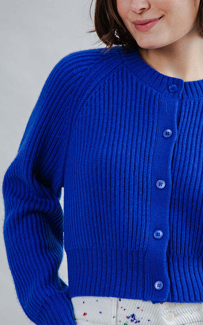 Wikkel jezelf in tijdloze warmte met de Wool Cropped Cardigan. De duurzame RWS-wolmix zorgt voor een zachte, comfortabele pasvorm die moeiteloos te combineren is met zowel casual als verfijnde looks. De cropped lengte en rijke blauwe tint geven een frisse, veelzijdige touch aan je garderobe-essentials.
