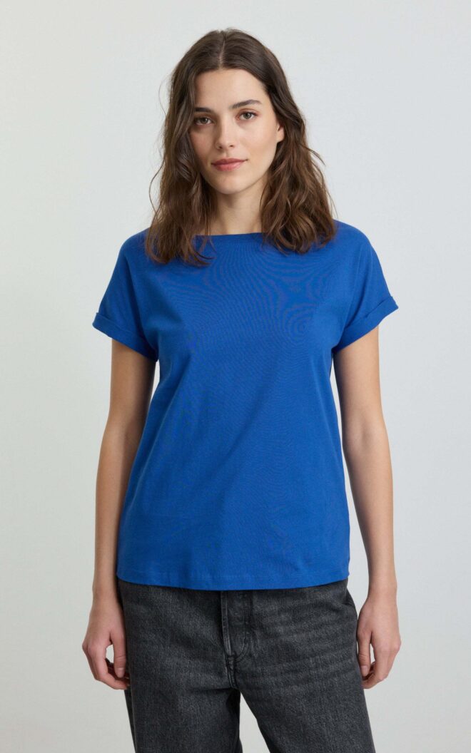 It's a basic t-shirt made with 100% organic cotton yet its boxy fit, wider shoulders and turned-over sleeves give Cayenne its flattering look.