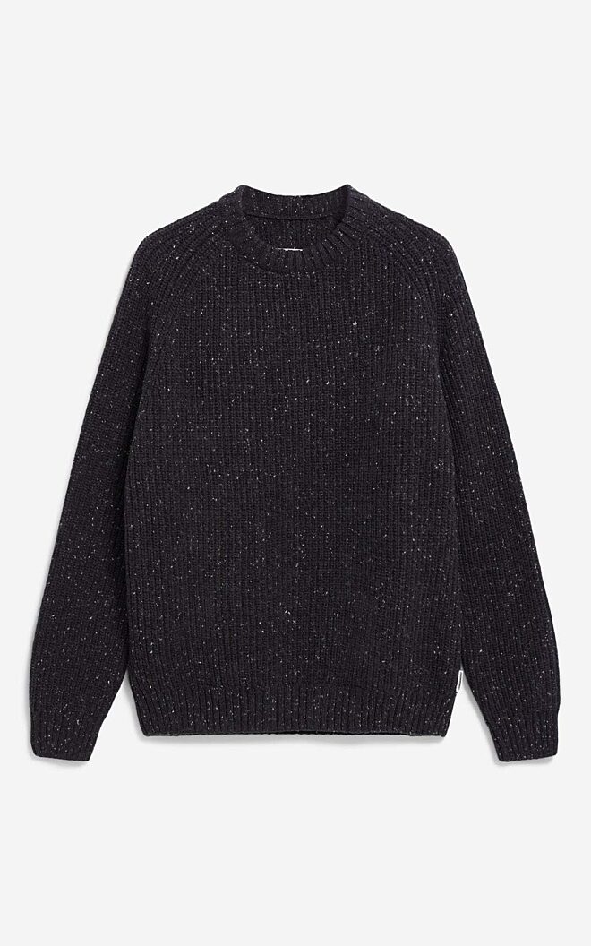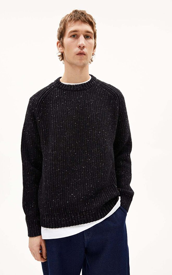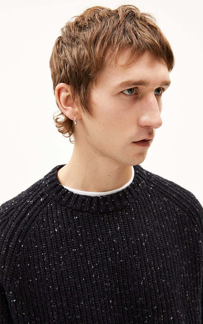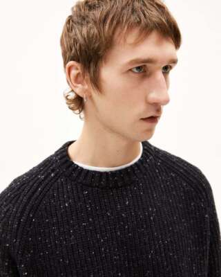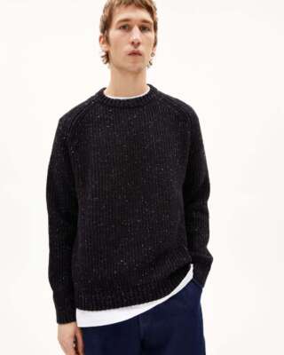 The KIAANO TWEED sweater with coarse stitching is made out of a mix of biological cotton and recycled wool. This sweater is comfortable, has a straight fit and keeps you nice and warm.
