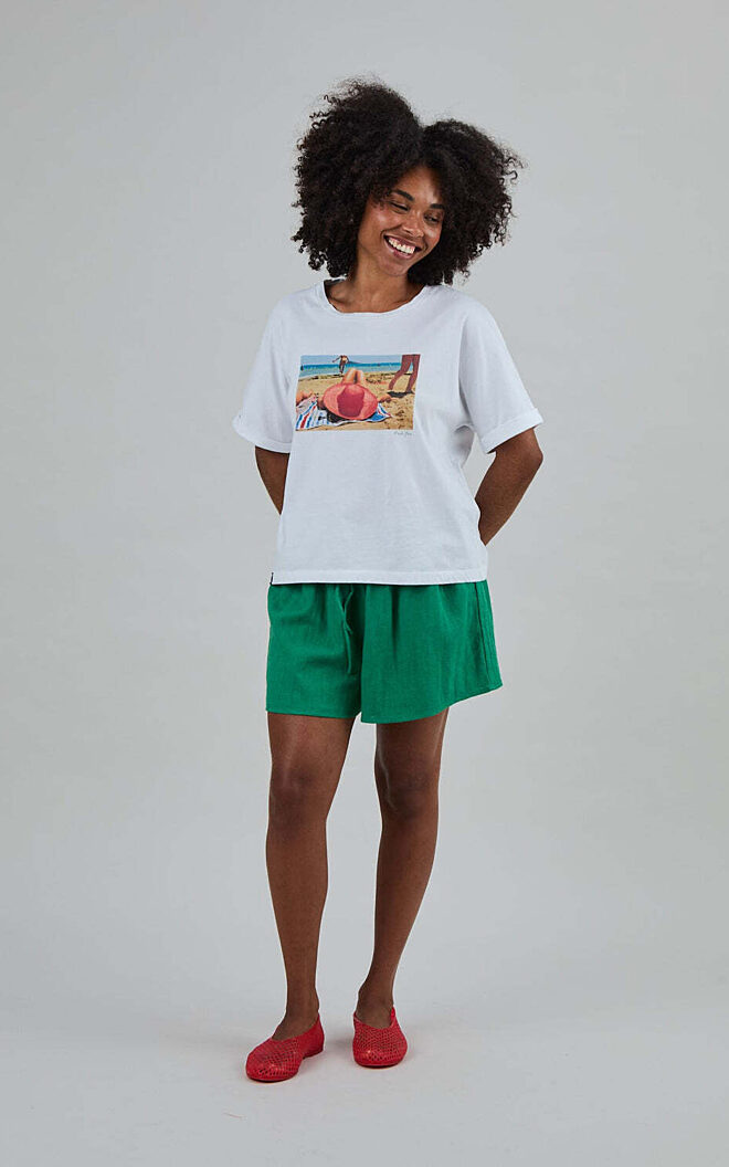 A relaxed statement piece, the white This is Spain by Martin Parr Magnum Oversize Tee combines a bold photographic graphic with an easy oversized silhouette. Designed for comfort and casual styling, it pairs well with denim, wide leg pants or shorts.
