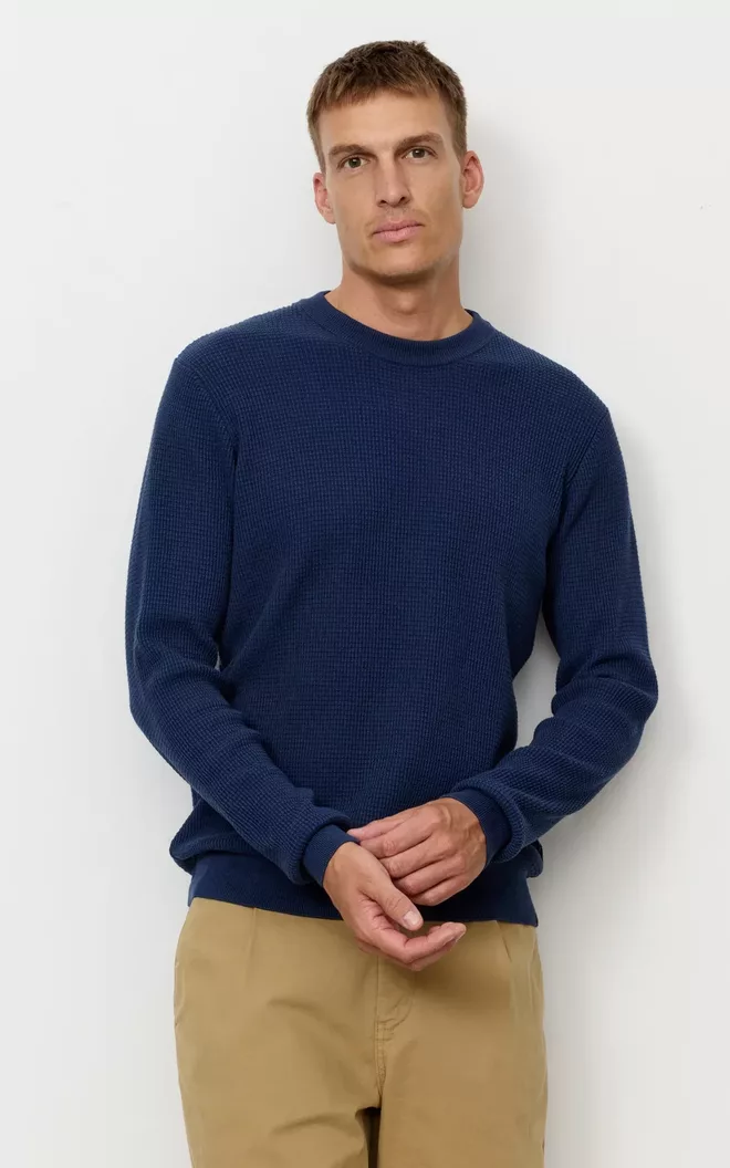 The LUPIN jumper combines timeless design with sustainable production. Made from 100% organic cotton, this knitted jumper is comfortable to wear and particularly kind to the skin. The round neckline and striking waffle pattern give the jumper a modern, textured look.