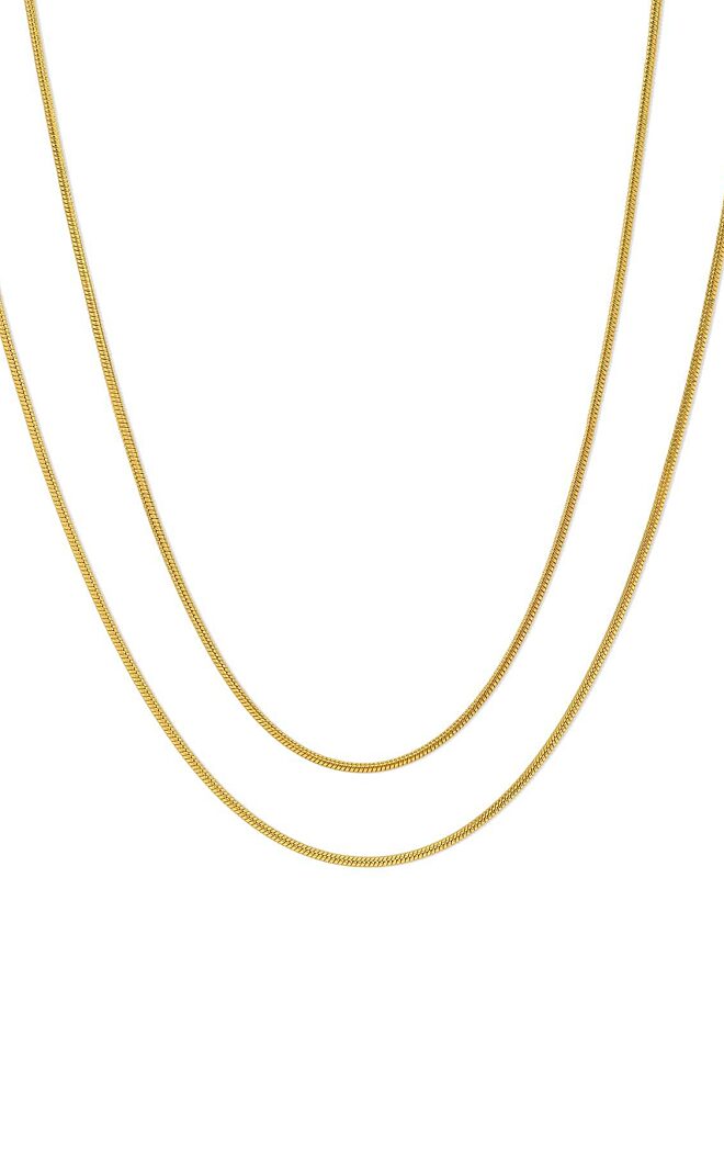 Sleek and sophisticated with this double snake chain necklace. This stainless steel necklace features two snake chains for a layered look, is water-resistant, and tarnish-free for a unique texture. Available in silver & gold to fit your style and needs.