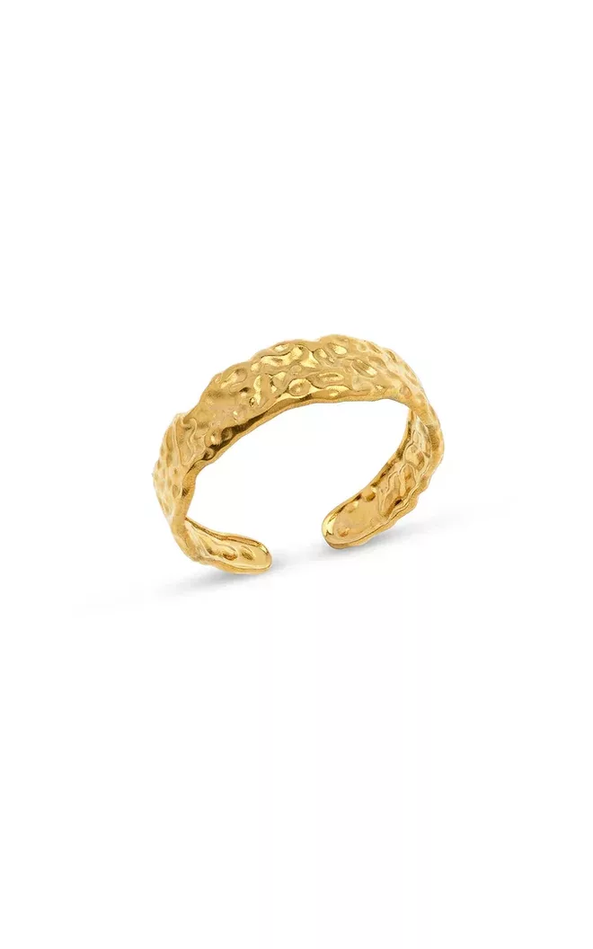 Artisanal charm with this hammered ring. This textured stainless steel ring has a hammered finish, is water-resistant, and does not discolor for a unique look.